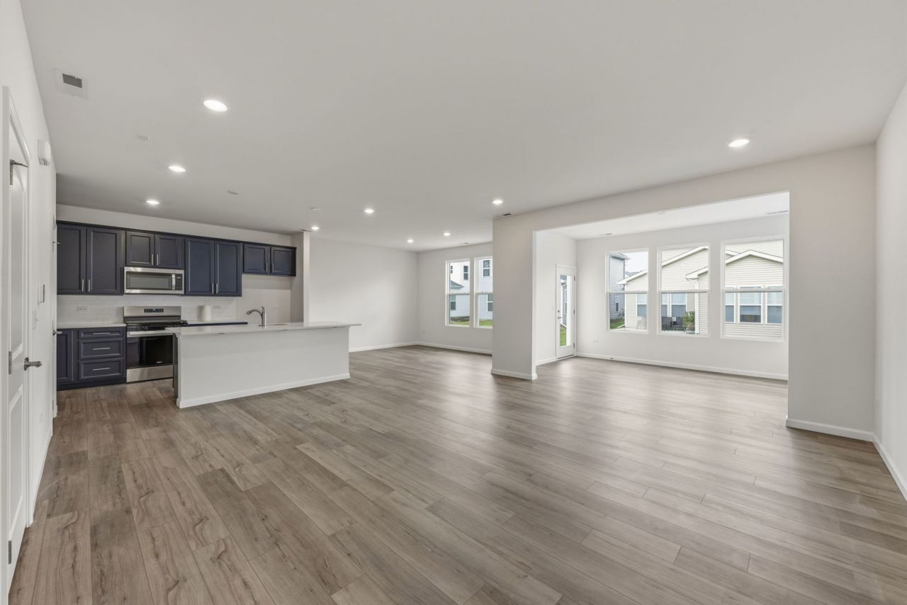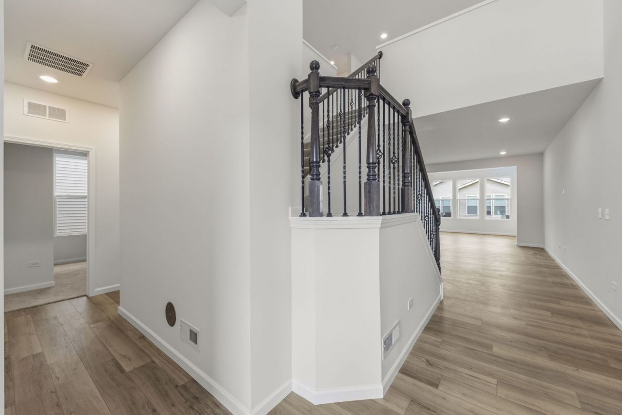 Stunning new construction home in Naperville, fully move-in ready and offering $61K in upgrades from the builder's base package, designed with thoughtful updates to create a clean, modern aesthetic throughout. The main level features a well-designed kitchen with custom sleek cabinetry, upgraded hardware, and quartz countertops, opening seamlessly to the dining area and living space for easy everyday living and entertaining. Additional four-season sunroom with windows throughout fills the space with natural light, creating a bright, open feel across the main level. The main floor also includes a fourth bedroom with easy access to a full bath, providing flexibility for a guest room, private office, or additional living space. An iron barrel staircase leads to the second level and anchors the space. Upstairs features an expansive loft area, ideal for a home office or additional living space. The primary suite offers a private ensuite with dual sinks, a glass-enclosed shower, and a walk-in closet. Two additional bedrooms with easy access to a full bath, along with a designated mudroom for added convenience, complete the upper level. New carpeting throughout provides a clean, fresh feel, complemented by upgraded luxury vinyl flooring on the main level. The home offers an expansive layout with modern finishes and strong natural light throughout. Move-in ready and ideally located in Naperville Polo Club, this home is just minutes from dining, shopping, and parks, offering both convenience and a strong community setting.